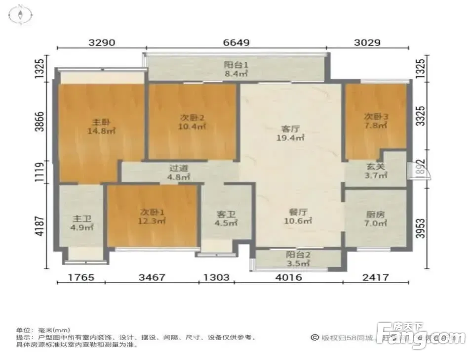 房屋户型方正,景观布局合理,设计实用,空间舒适,格局优越,采光通风良好