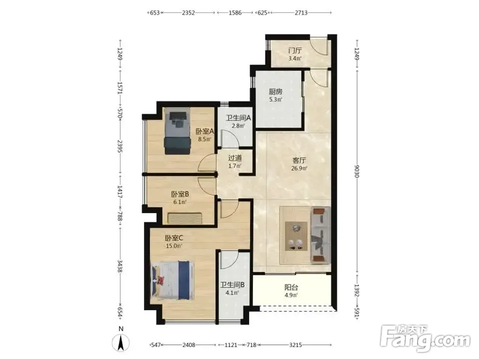 3室2厅1卫