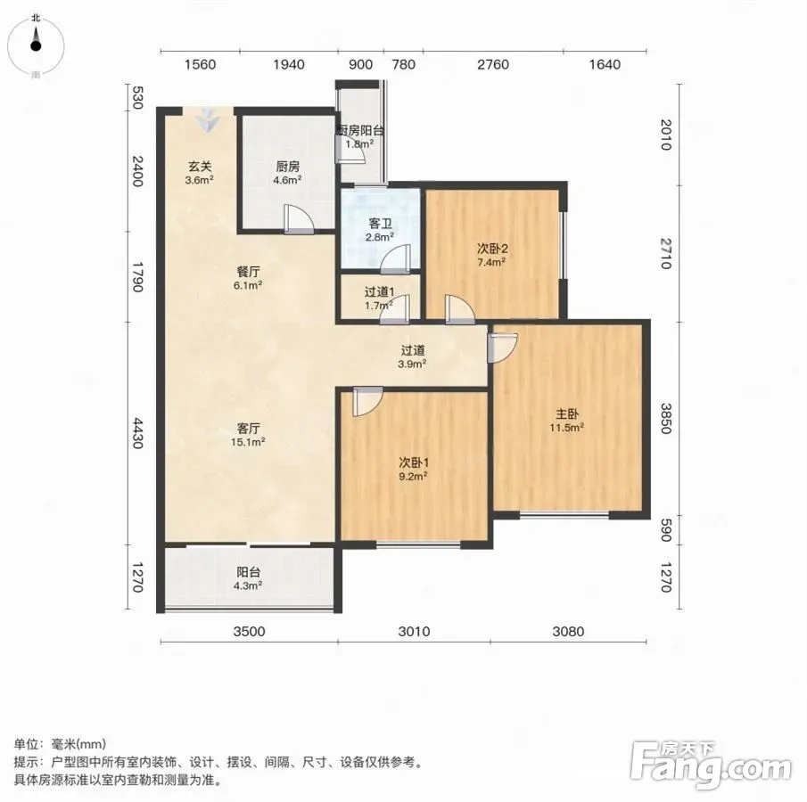 户型齐全,主打南北通透,全明格局三居