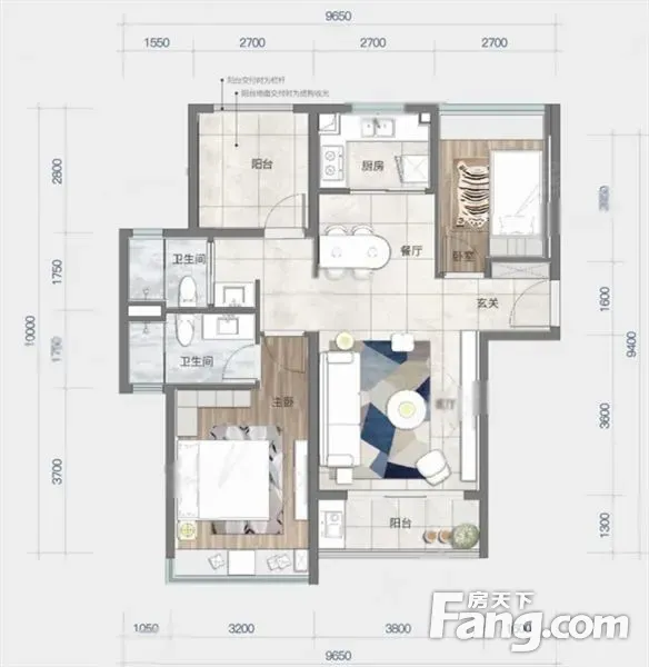 户型齐全,主打全明格局,户型方正,动静分离,带衣帽间,独立衣帽间,U型厨房,餐客分离,大面宽阳台三居