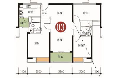 户型齐全,主打户型方正,动静分离三居