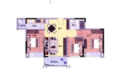 户型齐全,主打户型方正,动静分离,大面宽阳台三居
