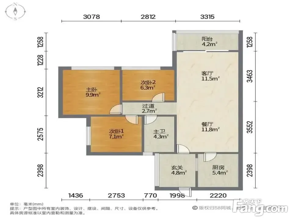 户型齐全,主打南北通透,全明格局,户型方正三居