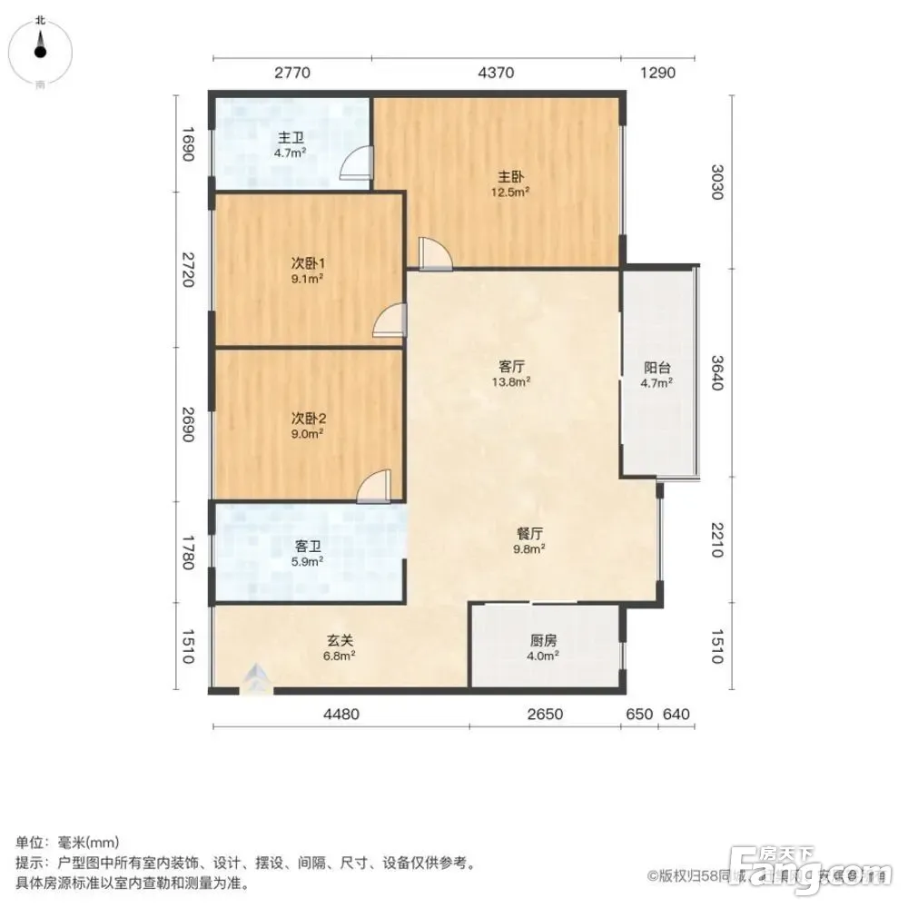 户型齐全,主打南北通透,全明格局三居