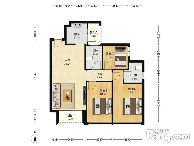 户型齐全,主打动静分离,观景飘窗三居