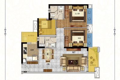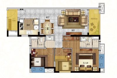 户型齐全,主打南北通透,动静分离,主卧带卫,主卧套间,明厨明卫,入户花园三居