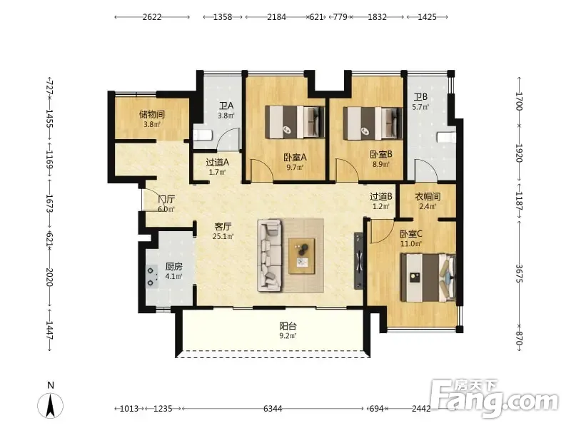房屋拥有相对宽松的尺寸,布局通透,动静分离,设计豪华
