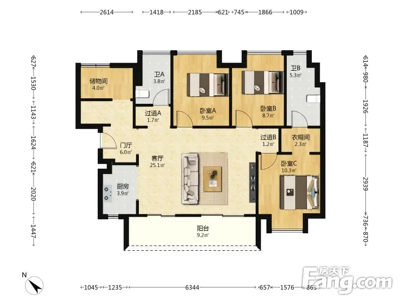 房屋拥有相对宽松的尺寸,布局通透,动静分离,设计豪华