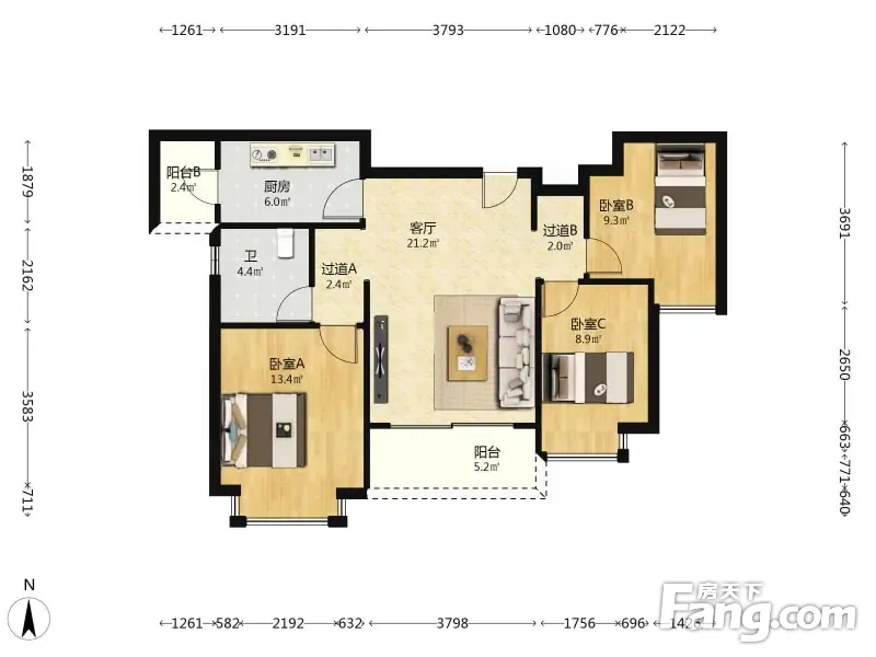 3室2厅1卫