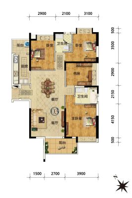 户型齐全,主打明卫,双阳台三居