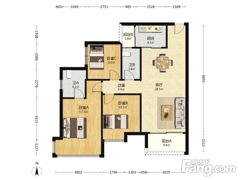 3室1厅2卫