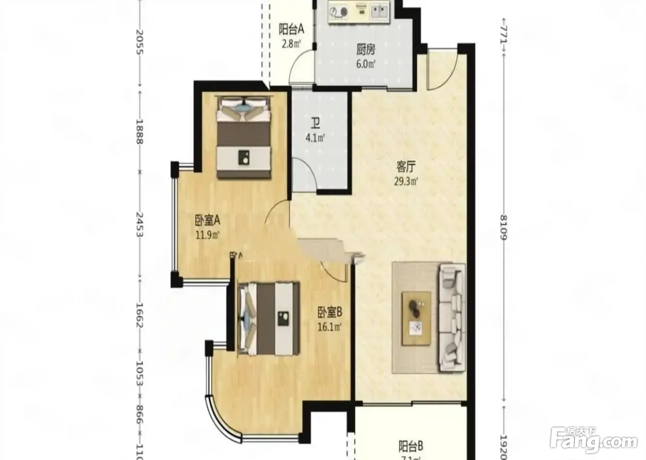 户型齐全,主打户型方正二居