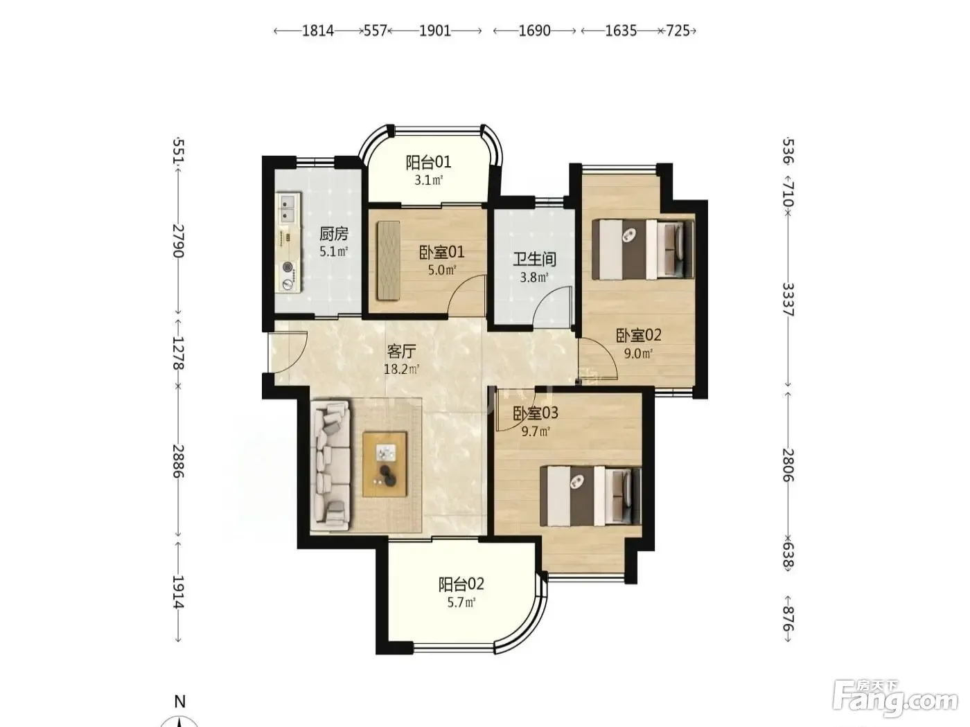 3室1厅1卫