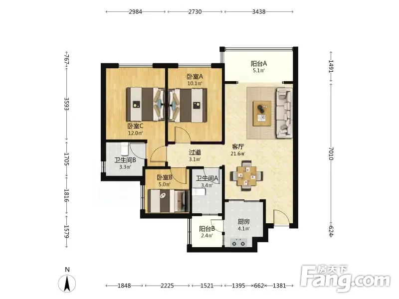 3室1厅2卫