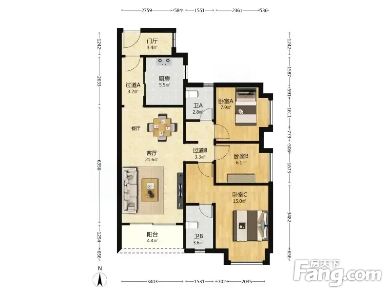 3室1厅2卫