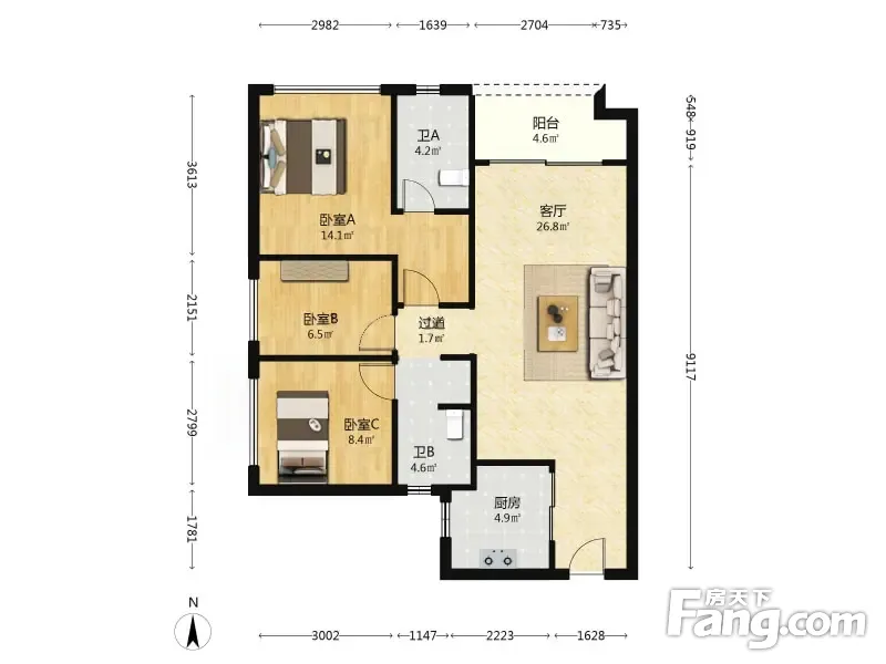 3室1厅2卫