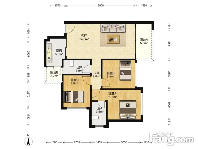 3室1厅2卫