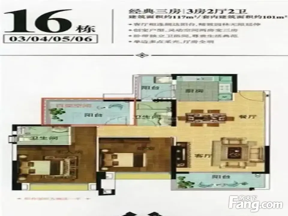 户型齐全,主打户型方正,明卫,双阳台三居
