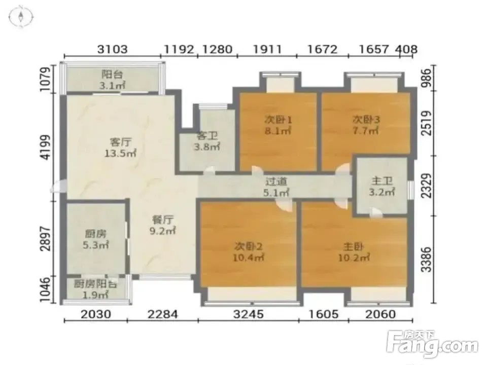 户型齐全,主打户型方正,明厨,客厅朝南,双卧朝南,主卧朝南三居