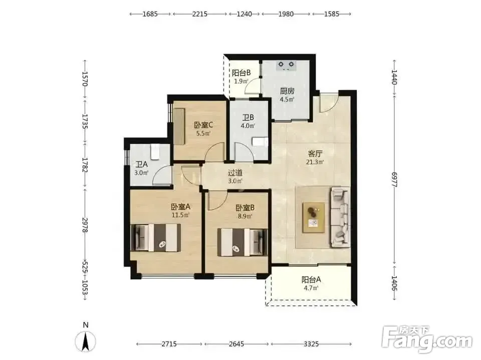 3室2厅1卫