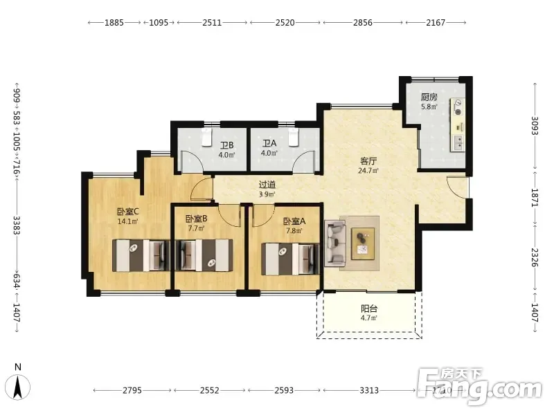 3室2厅1卫