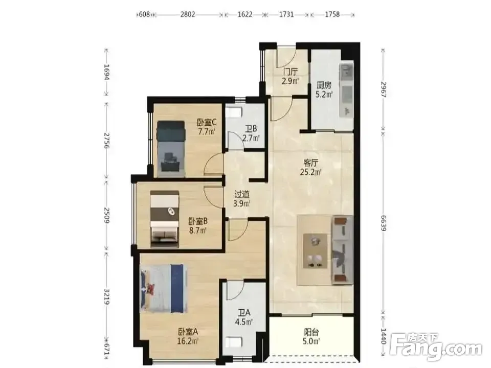 3室2厅1卫