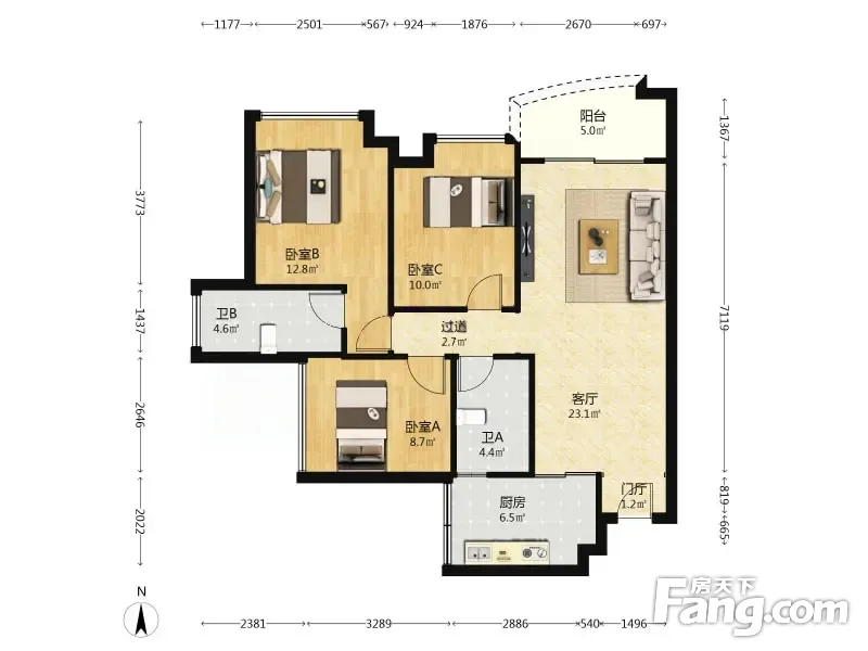 3室2厅1卫