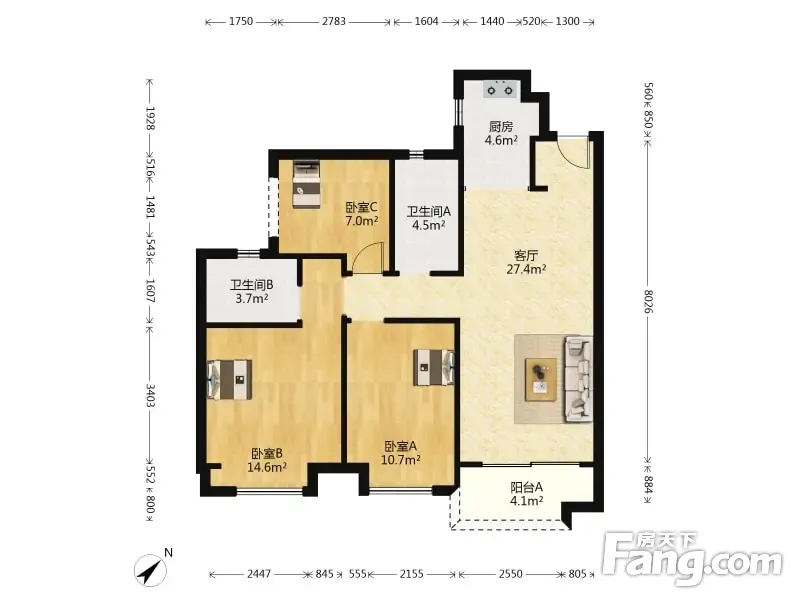3室1厅2卫
