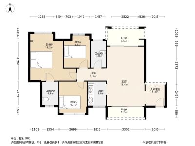 华盛圆坊名荟 3室2厅 南