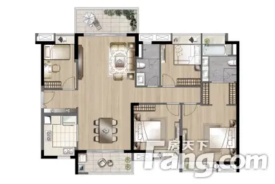 时代名著户型主要有95平-113平的明卫,明厨,客厅朝南,全明格局,主卧朝南的三居 、143平-143平的明卫,明厨,双阳台,双卧朝南的四居 。