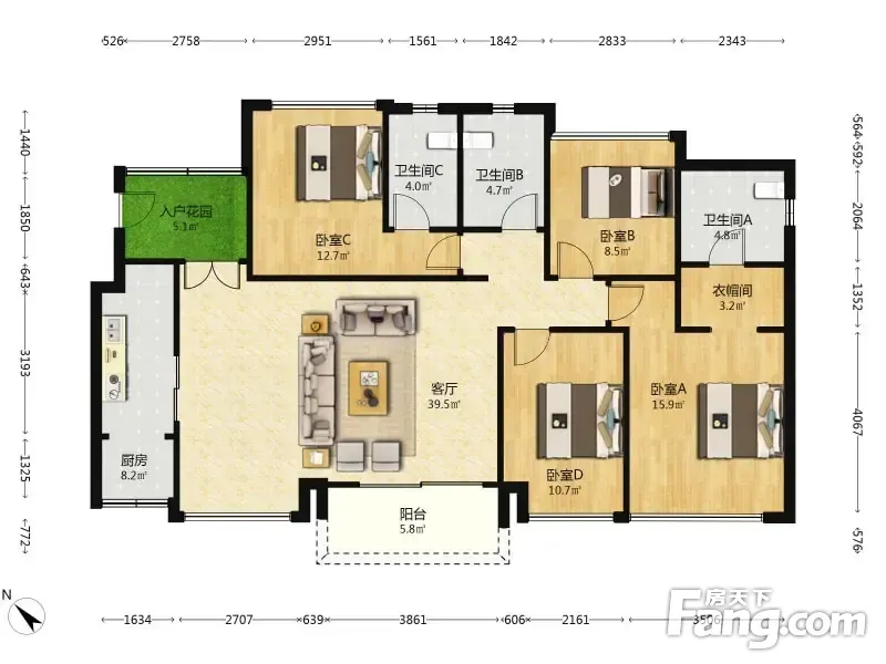 房屋拥有相对宽松的尺寸,布局通透,动静分离,设计豪华