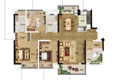 户型齐全,主打户型方正,动静分离,采光充足三居