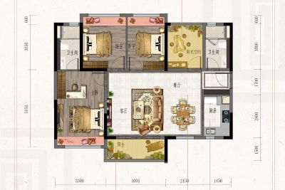 户型齐全,主打户型方正,动静分离三居