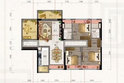 金茂碧桂园正荣府户型主要有90平-100平的户型方正,动静分离的三居 、107平-120平的户型方正,动静分离的四居 。