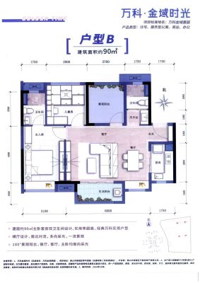 万科金域时光(商业)户型主要有90平-90平的户型方正,主卧朝南,主卧带卫,主卧套间,带衣帽间,U型厨房,餐客分离的三居 、32平-32平的户型方正,动静分离,采光充足的一居 。