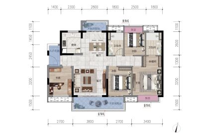 户型齐全,主打户型方正,动静分离三居