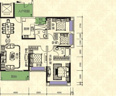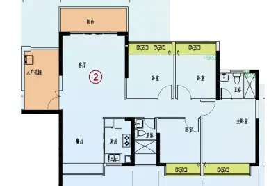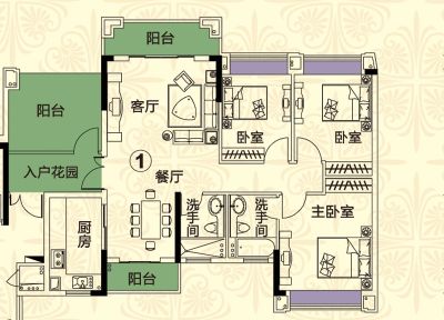 户型齐全,主打主卧带卫,户型方正,客厅朝南三居