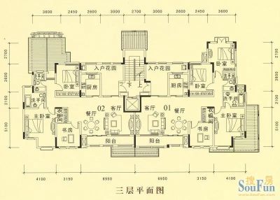 户型齐全,主打户型方正,采光充足,卧室朝南三居