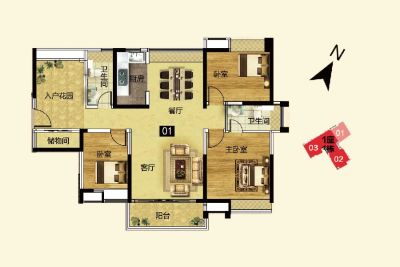 户型齐全,主打户型方正,明厨二居