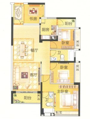 颐澳花园户型主要有90平-118平的明卫,明厨,双卧朝南的三居 、112平-116平的露台,南北通透的四居 。