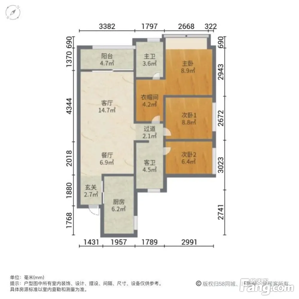 户型齐全,主打明卫,明厨,主卧朝南三居