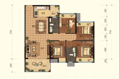 户型齐全,主打户型方正,动静分离三居