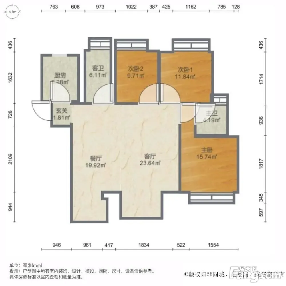 户型齐全,主打明卫,双阳台,主卧朝南三居