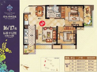 绿地香树花城户型主要有80平-117平的明卫,双阳台,主卧朝南的三居 、114平-143平的明卫,客厅朝南,双阳台,主卧朝南的四居 、74平-77平的户型方正,全明格局的二居 。