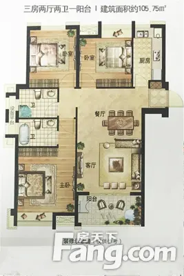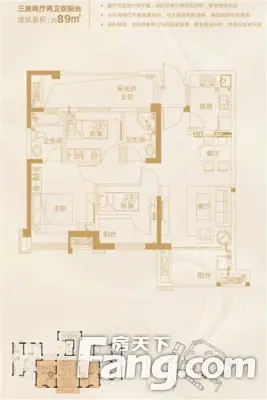 户型齐全,主打主卧带卫,客厅朝南,主卧朝南,卧室带阳台三居