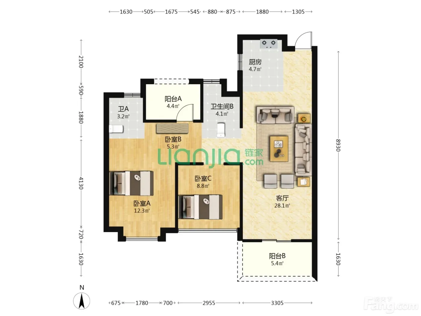 3室1厅2卫