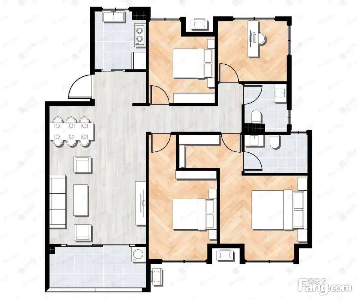 户型齐全,主打主卧带卫,L型厨房四居