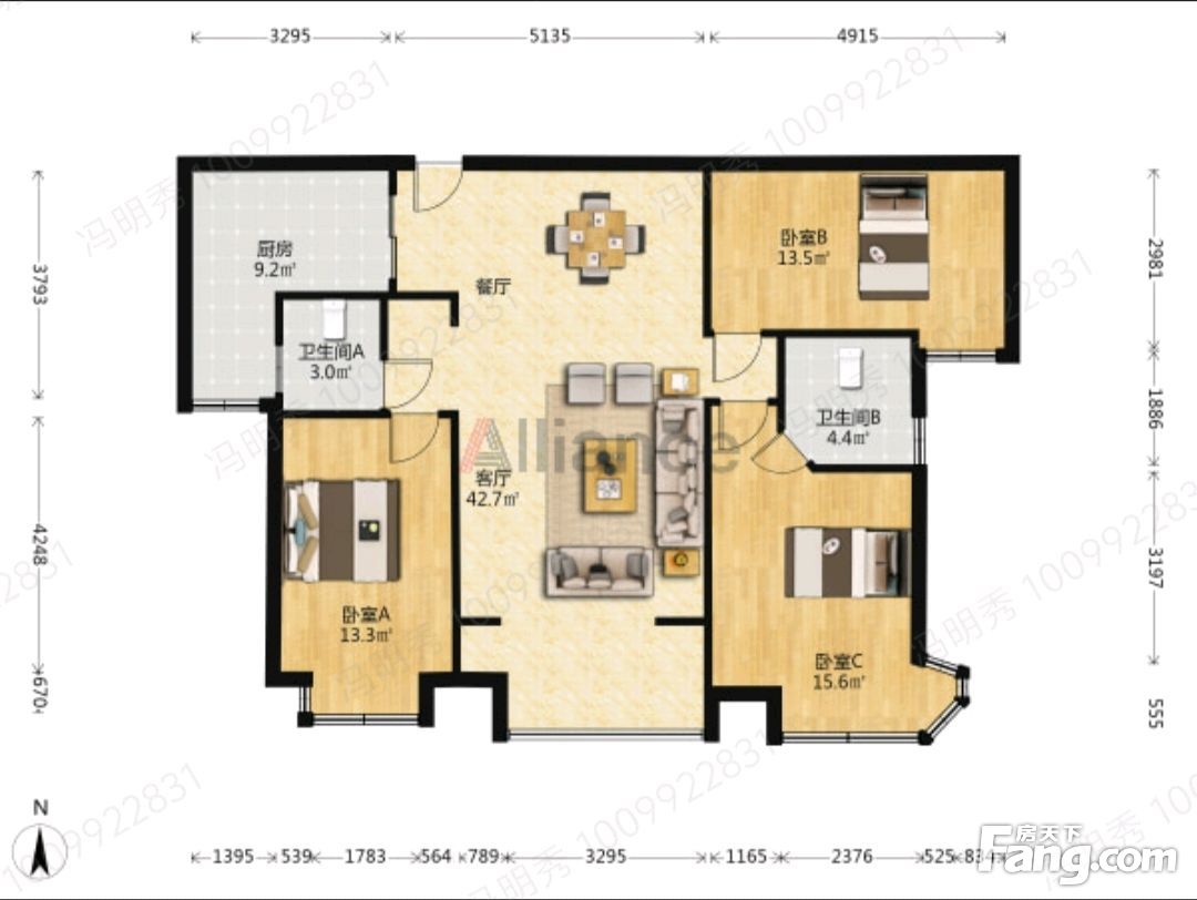 户型齐全,主打南北通透,卧室朝南三居