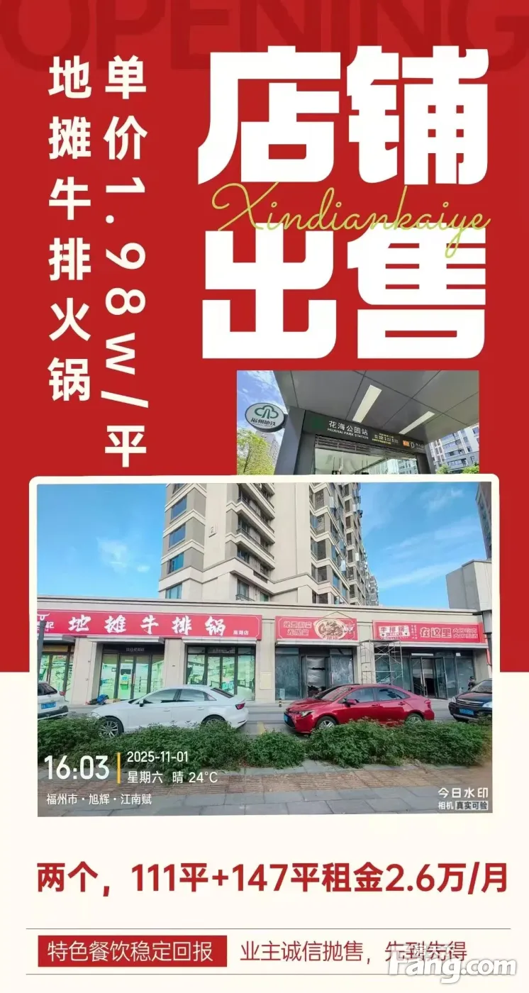 福州老城区绝佳位置商业办公出售,面积3310平方,原租客市做娱乐行业,经营将近20年,生意一直都很好,现在业主房东因需要外地投资,急需资金,诚意满满出售,单价6948元,总价2300万,这么低的价格该平台都不让发布,因为该平台有大数据库,明显是低于市场价很多很多的,说明是捡漏的机会就在眼前,请有诚意购买的客户朋友来电联系。 二环售楼部独栋: 产品面积:1943平方 共10本产权,纯商业 4层,每层4.5米。18米层高 单层约500平一层 车位:投影面积可购 售价:4500万、 网签:可商议 用途:汽车4S店,新能源品牌展厅 只为成交!房东诚意出售降价1200万!仓山城门独幢共5层5422平米,一、二楼店面产权、三、四、五楼办公产权,适合经营酒店、养老中心、医院、月子中心,公共停车位70个左右,159间共142本产权证,公司产权(以股权转让方式办理过户手续)售价2600万。 光伏免费安装合作(非住宅业态) 1.?可合作业态:写字楼、产业园、工业园、工厂、医院、学校、商业体(要求产权清晰,或村部证明)。 2.?核心优势:屋顶免费安装,提供免费售后,无需业主承担成本。 3.?签约年限:10年起(具体签约年限可细聊)。