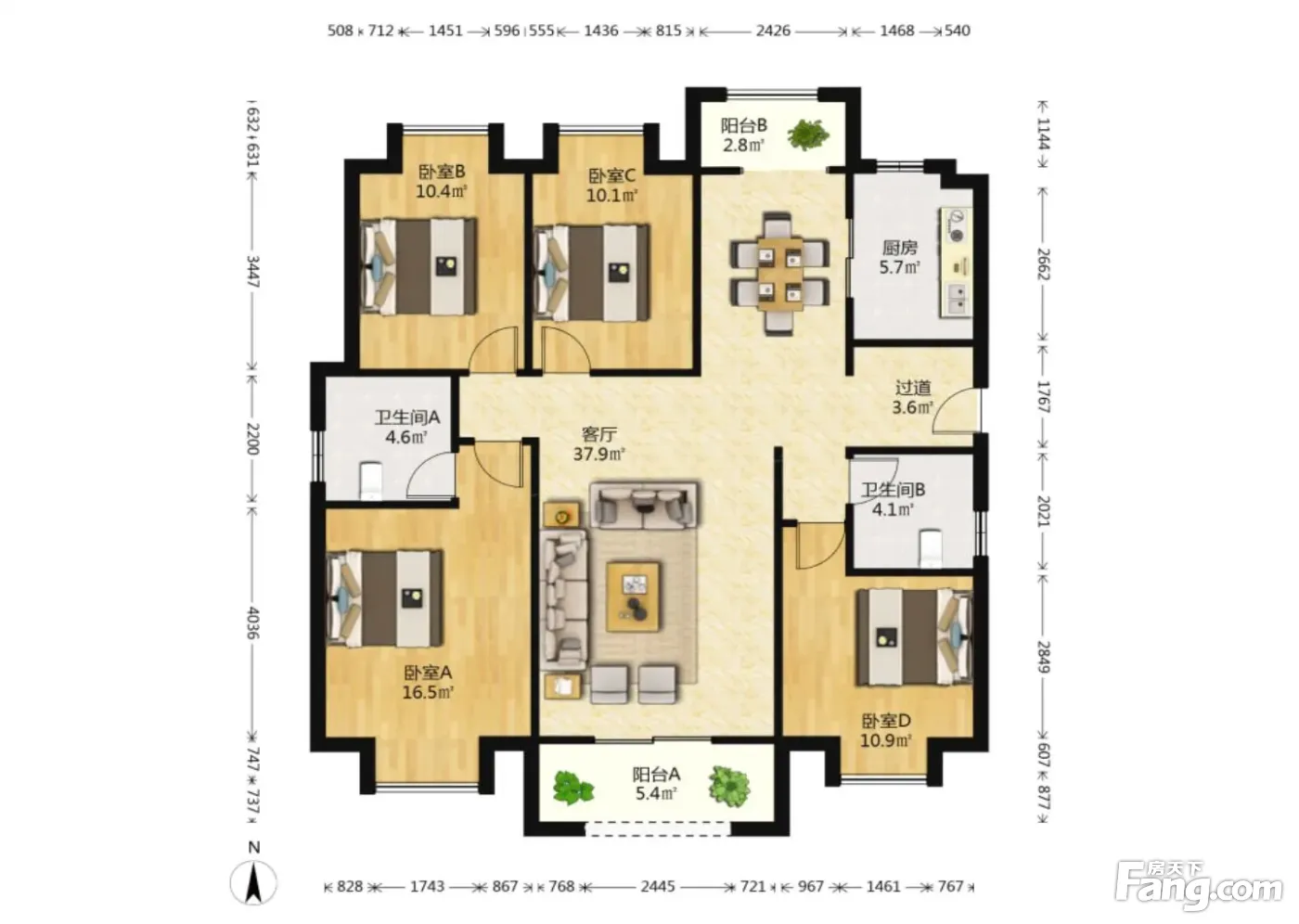 闽江世纪城A区 4室2厅2卫 精装修 205万元